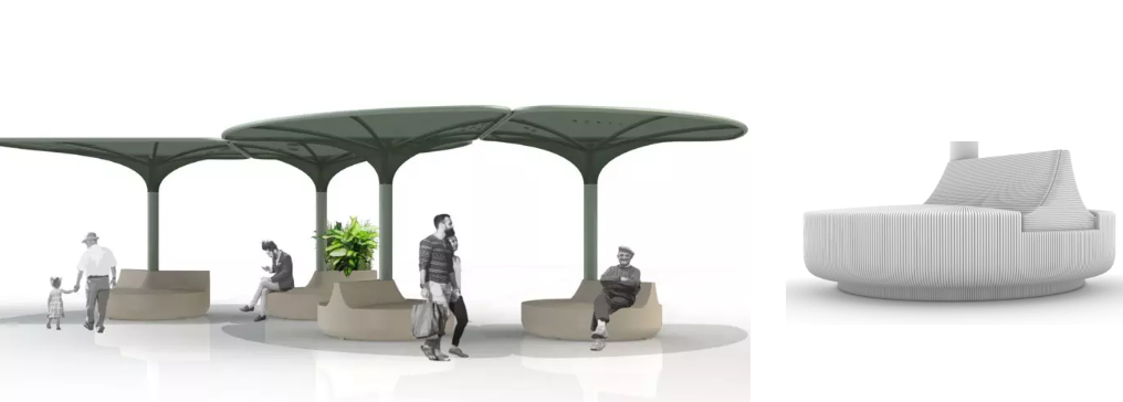 Le Square repose sur une approche simple mais efficace : créer un îlot de fraîcheur grâce à une structure textile performante.
